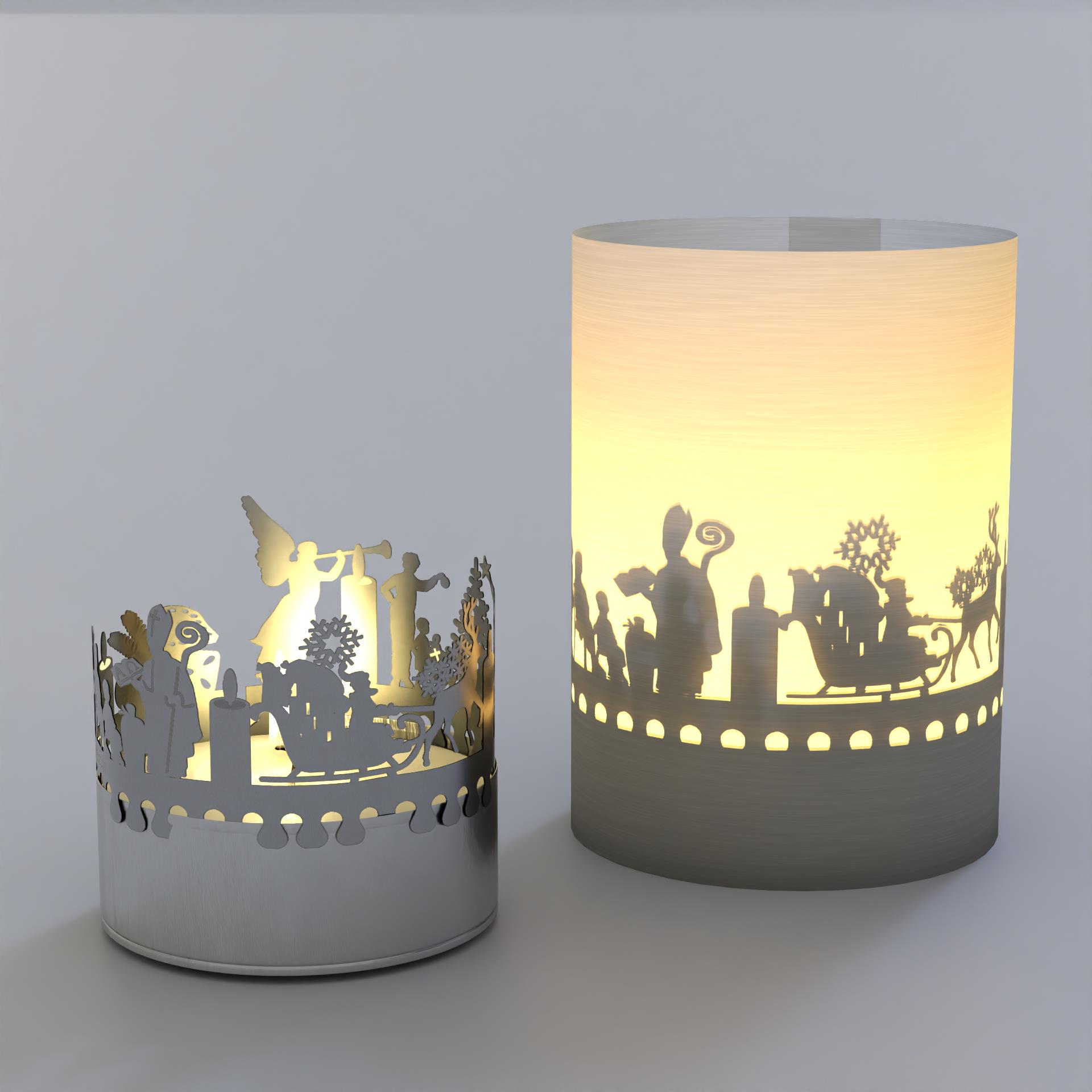 Ob Adventskerze, Weihnachtsmann, Nikolaus, Adventskranz oder Geschenke – mit unseren hochwertigen Edelstahl-Silhouetten zaubern wir dir eine traumhafte Atmosphäre. Kombiniere unsere Motivkerze mit weiteren weihnachtlichen Dekorationen und schaffe so eine bezaubernd festliche Stimmung. Der Projektionsschirm lässt das Schattenspiel besonders schön zur Geltung kommen und bringt die Vorfreude auf Weihnachten zum Ausdruck.