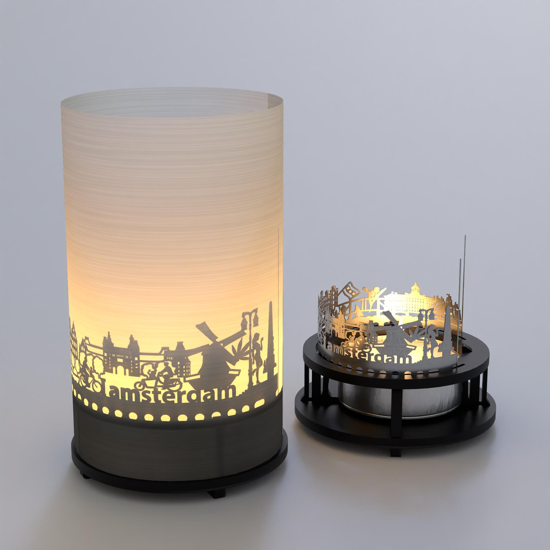 - Die Geschenkbox enthält eine hochwertige Edelstahlsilhouette, einen Projektionsschirm, einen Kerzenhalter und ein Teelicht. Das aufgebaute Windlicht hat eine Höhe von 100mm und einen Durchmesser von 65mm. Perfekt zum Weiterverschenken an Amsterdam-Fans, Reiselustige und Weltenbummler.