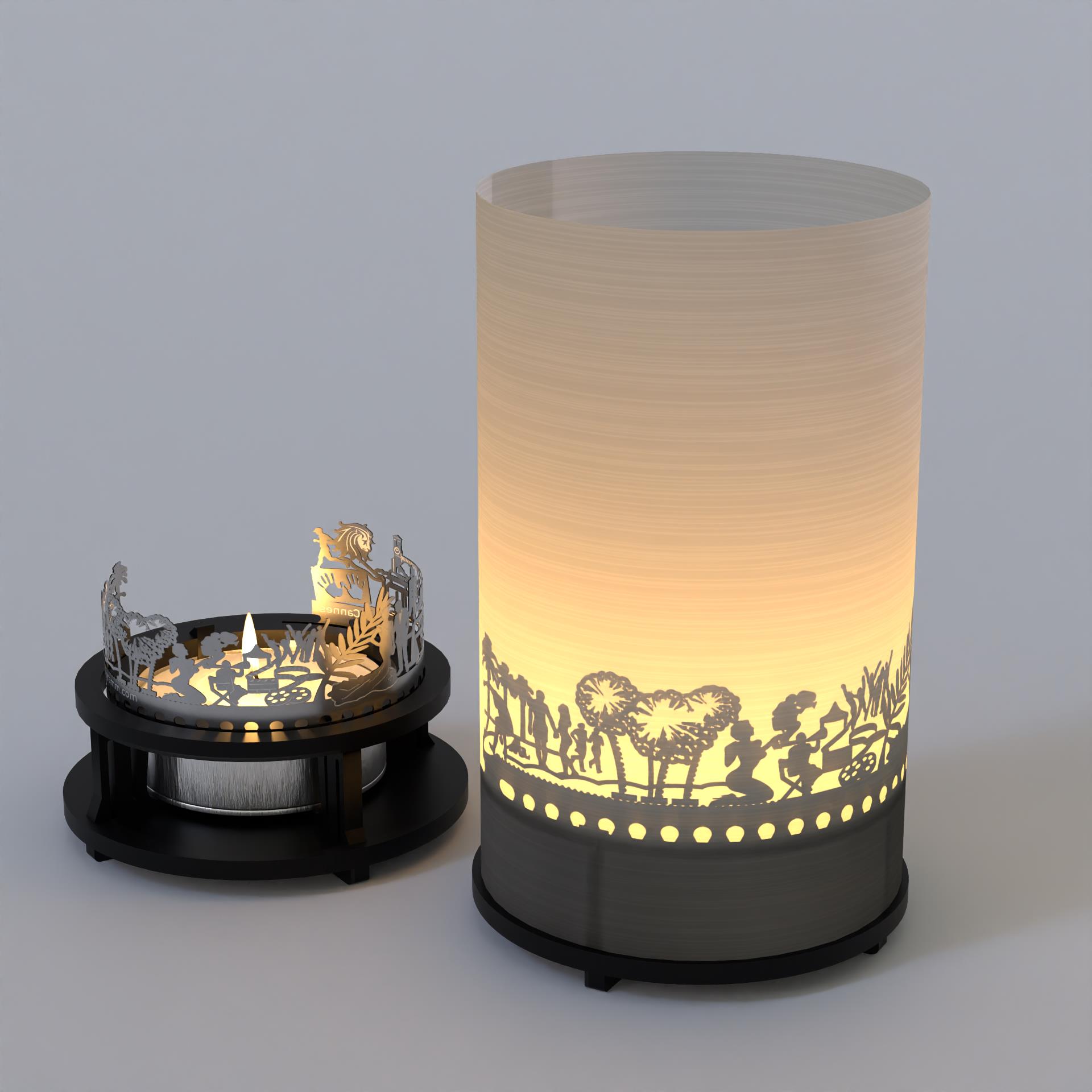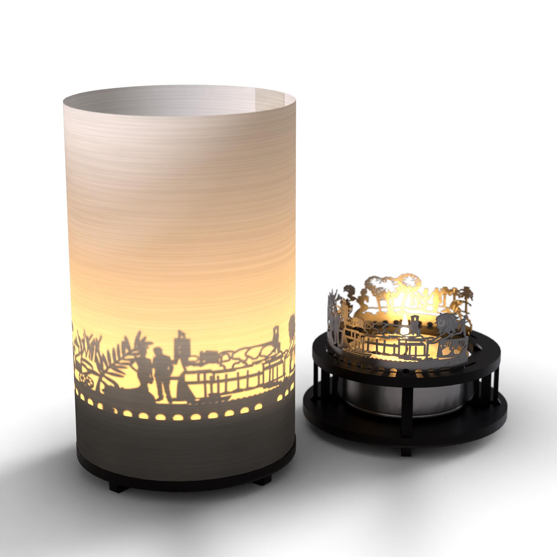 - Die Geschenkbox enthält hochwertige Edelstahlsilhouetten, einen Projektionsschirm, einen Kerzenhalter und ein Teelicht. Das aufgebaute Windlicht ist 100mm hoch und hat einen Durchmesser von 65mm. Es eignet sich perfekt als Geschenk für Cannes-Fans, Reiselustige und Weltenbummler.