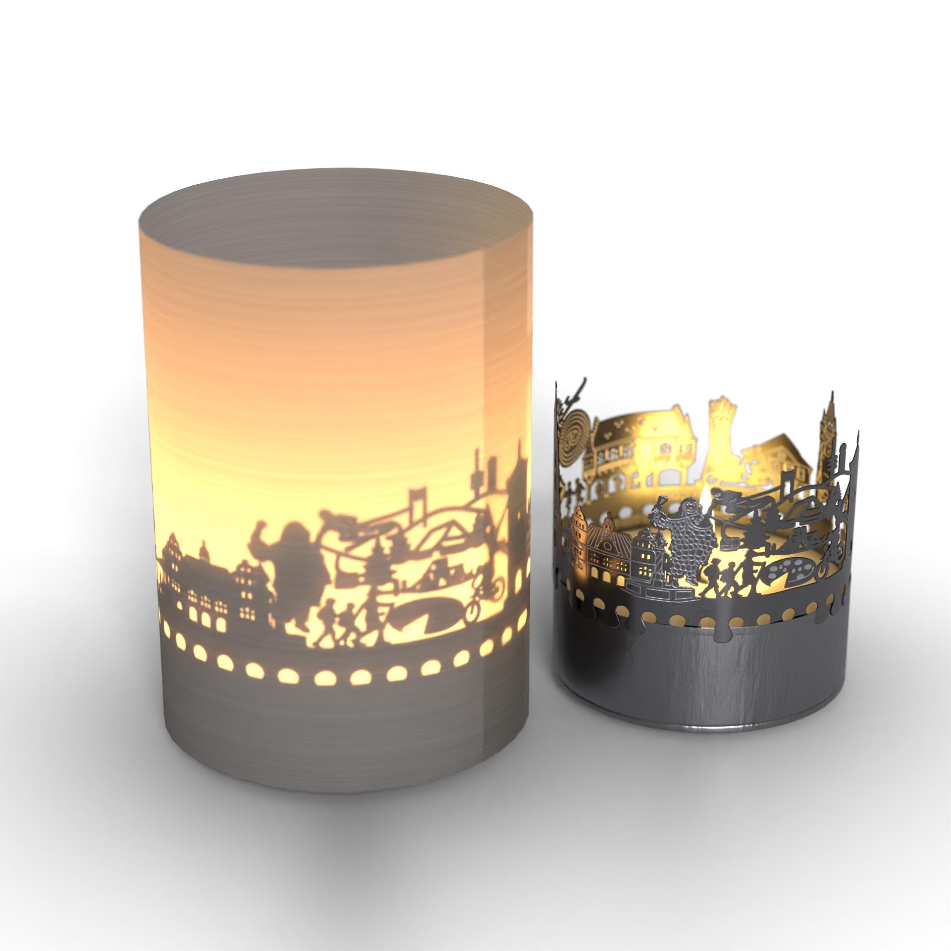 - Die hochwertige Silhouette besteht aus Edelstahl und wird zusammen mit einem Teelicht und einem Projektionsschirm geliefert. Das aufgebaute Windlicht misst 65 mm Höhe und 46 mm Durchmesser und eignet sich perfekt als kleines Geschenk oder Andenken für Freiburg-Fans.