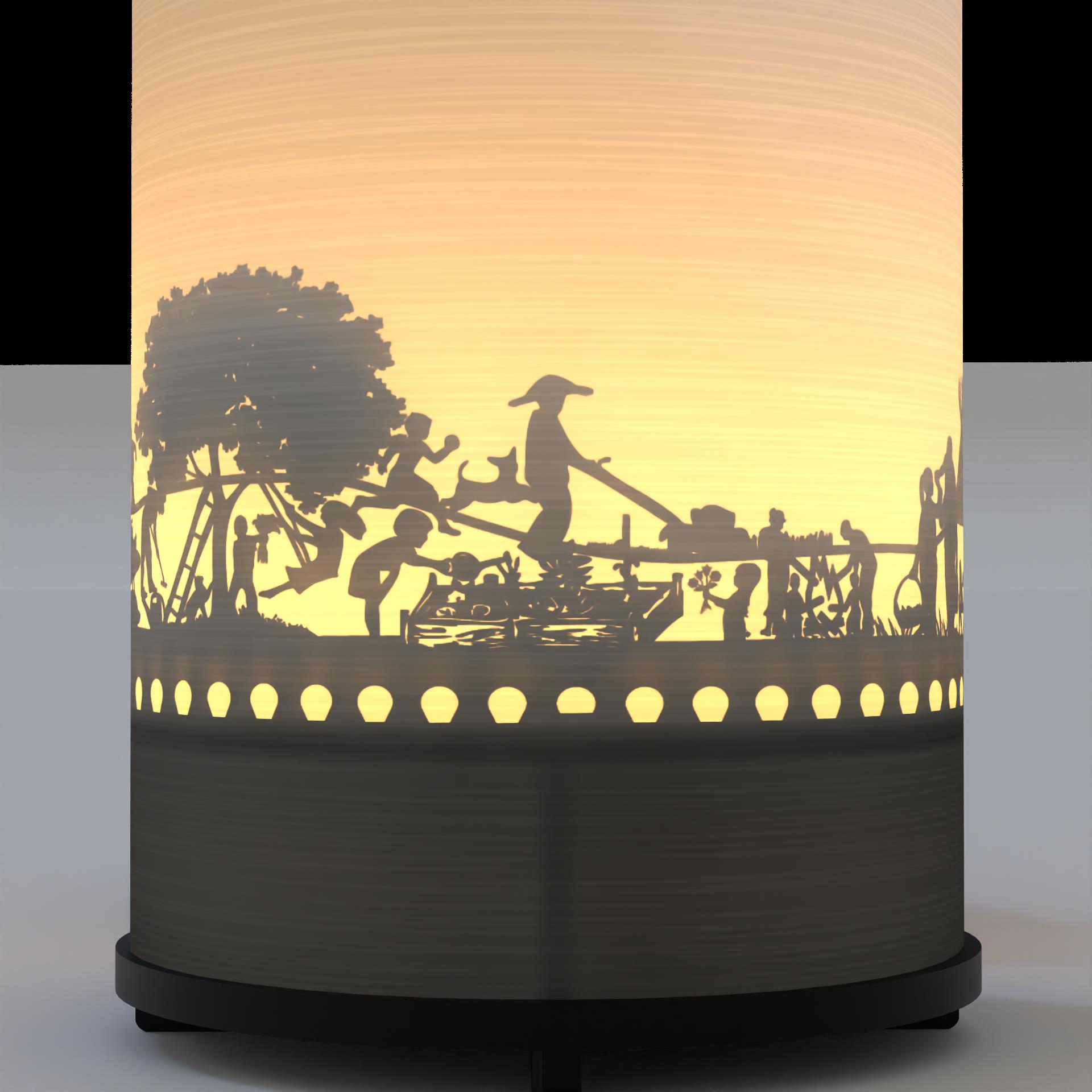 Folgende filigrane Motive können Sie in Ihrem Kerzen-Schattenspiel entdecken: Gartenparty, Blumenbeete, Spaziergänge, Zeit mit Kindern, Entspannung und Freizeit, Rasenmähen, Obstbäume, Sonnenschirme, Gartenarbeit, Gartenmöbel, Schaukeln, Familienzeit
