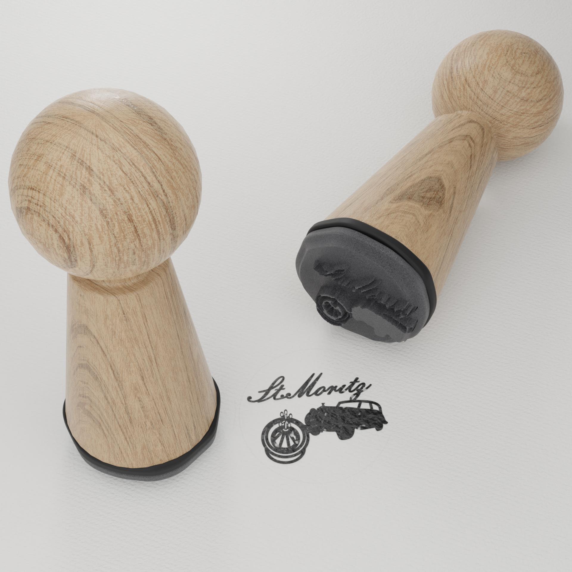 Lieferumfang: Stempelset, bestehend aus 5 verschiedenen Stempeln zum Thema St. Moritz. Die Stempel sind aus hochwertigem Buchenholz gefertigt mit einer Höhe von 36mm und einem Durchmesser von 15mm. Das Stempelgummi ist auf einer federnden Schaumstoffschicht montiert.