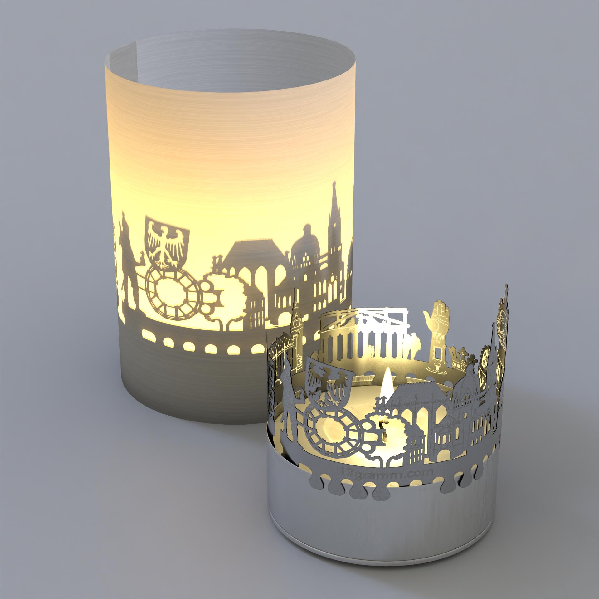 Entdecken Sie Aachen auf eine völlig neue Art und Weise mit der Aachen Geschenke-Tube. Diese einzigartige Motivkerze beeindruckt nicht nur durch ihr zauberhaftes Lichtspiel, sondern auch durch die detaillierte Silhouette und Skyline von Aachen, die in den Raum projiziert werden. Mithilfe des mitgelieferten Projektionsschirms kommt die Skyline noch besser zur Geltung und beeindruckt jeden Aachen-Liebhaber!