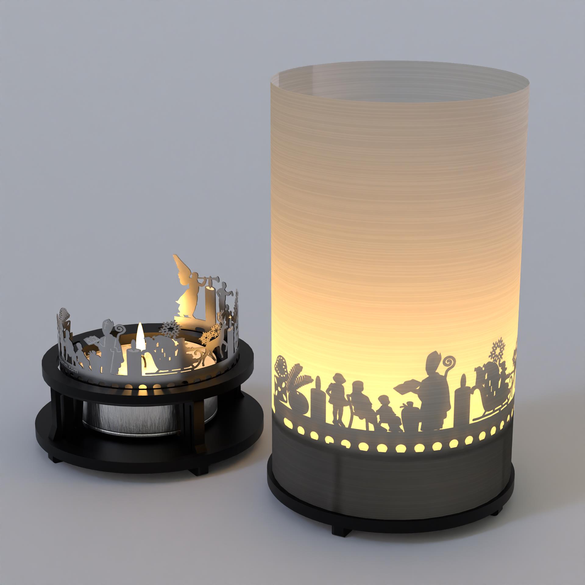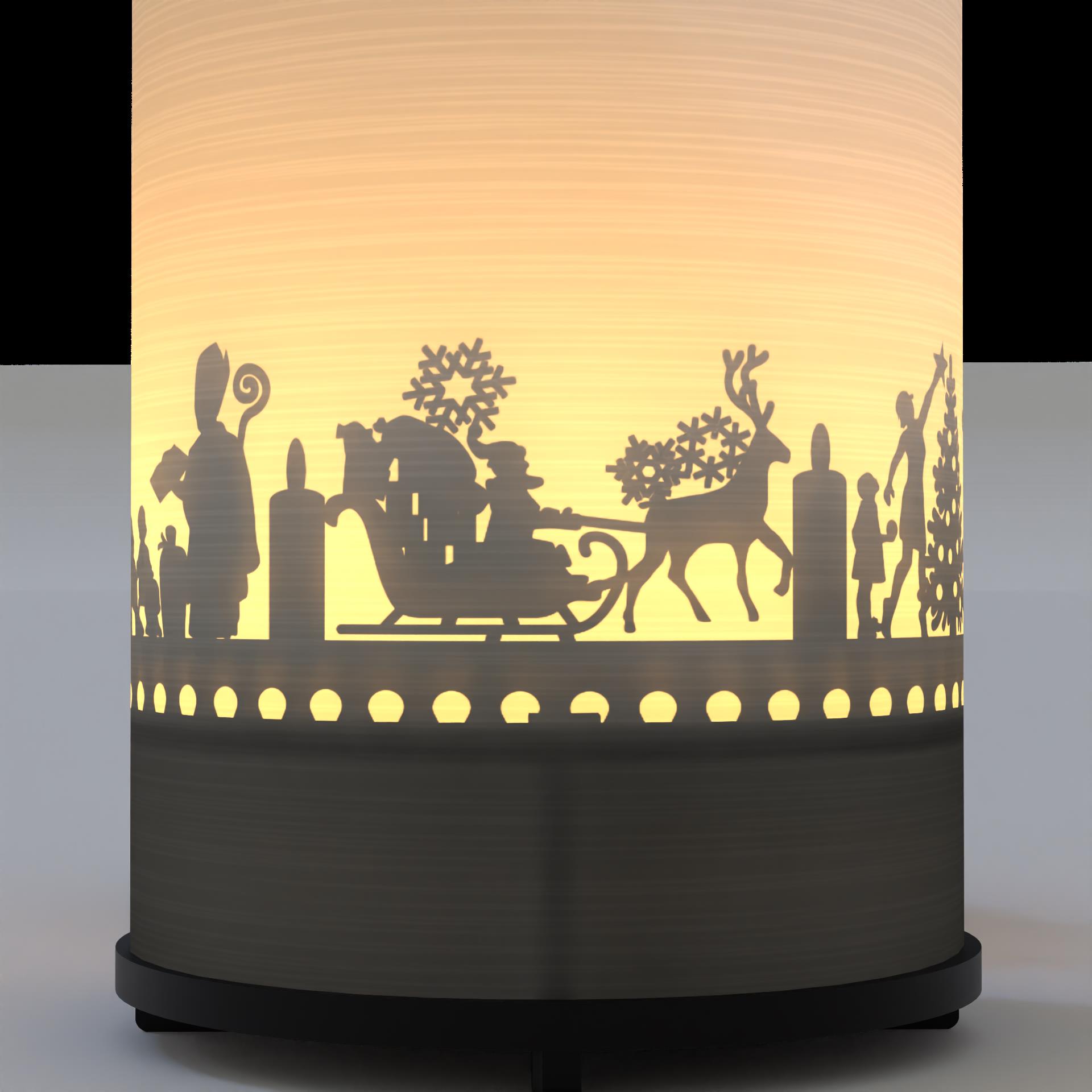 Folgende filigrane Motive können Sie in Ihrem Kerzen-Schattenspiel entdecken: Adventskerze, Weihnachtsmann, Nikolaus, Adventskranz, St. Nikolaus, Geschenke, Engel, Weihnachtskerzen, Lebkuchen und Dominosteine, Adventsdeko, Schneeflocken, Tannenzweige