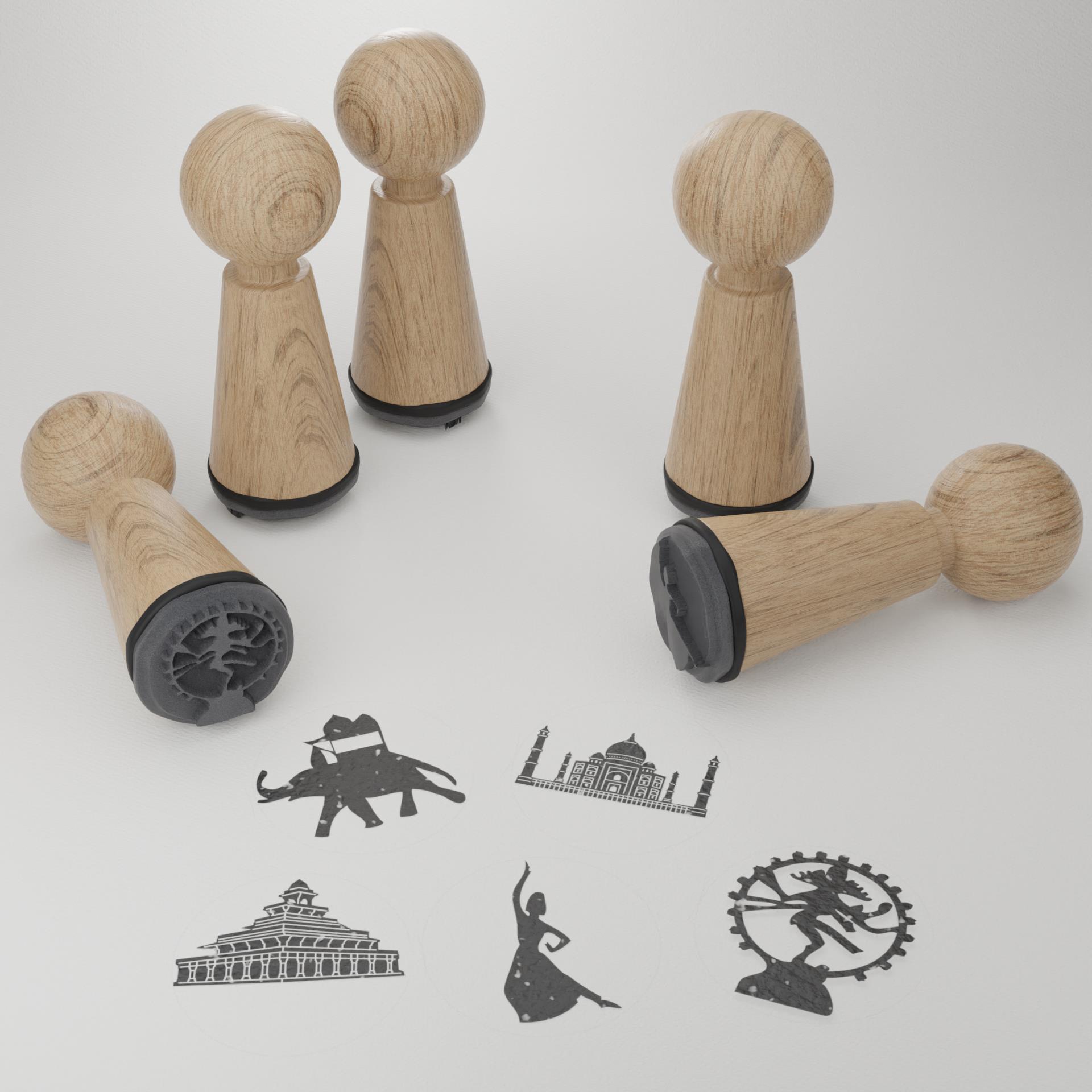 - Hochwertige Verarbeitung aus BuchenholzDie 5 Stempel haben eine Höhe von 36 mm und einen Durchmesser von 15 mm. Jeder Stempelabdruck hinterlässt einen bleibenden Eindruck mit den detailverliebten Motiven aus Agra.