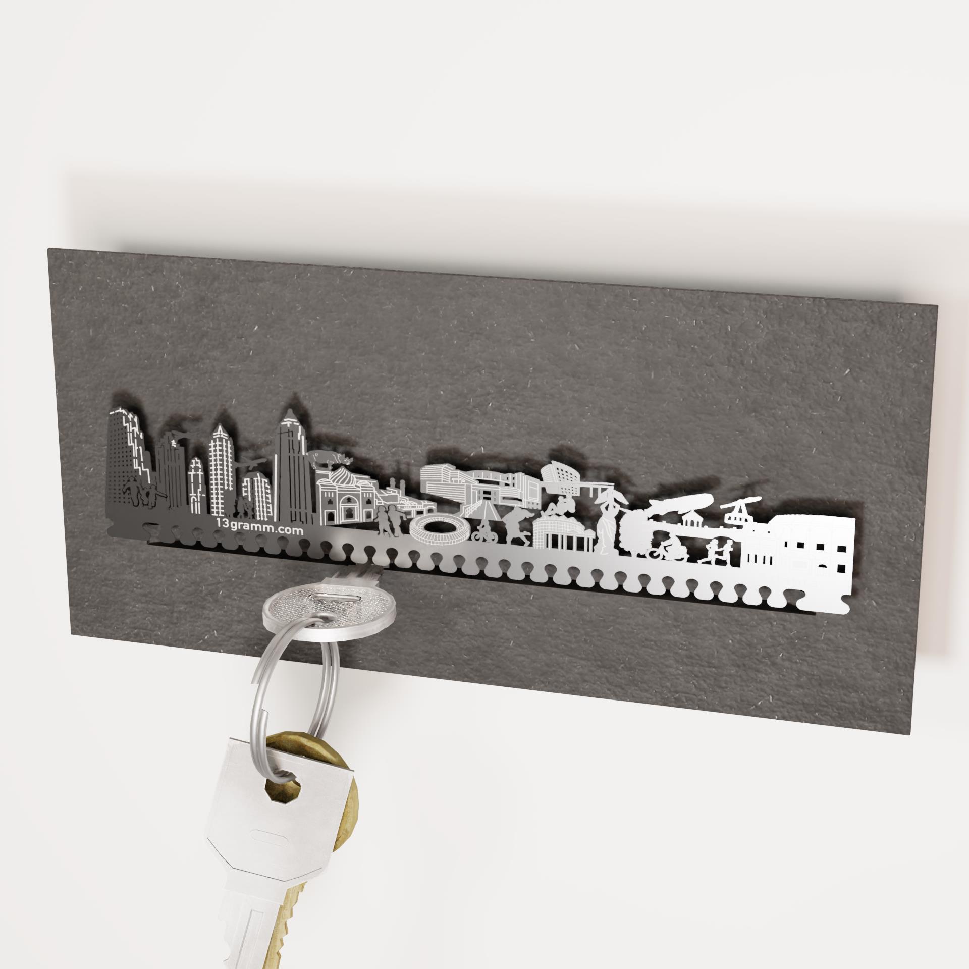- Das Atlanta Skyline Schlüsselbrett – Edel im Design, praktisch in der Verwendung. Perfekt als Geschenk für Atlanta-Fans oder als Souvenir aus der Stadt des Südens. Mit dem cleveren Steckschlitz bleibt die Schlüsselaufbewahrung komfortabel und ordentlich.
