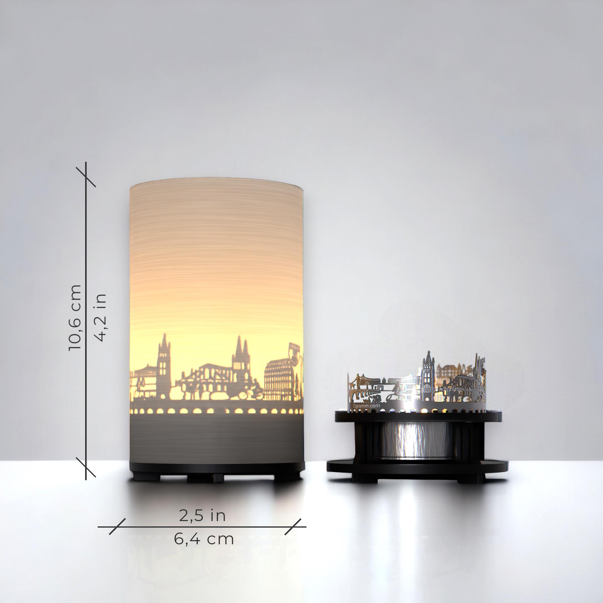 • Das Bordeaux Skyline Windlicht bringt die Stadt zum Leuchten und projiziert magisch die Silhouette von Bordeaux in den Raum. Erlebe das verzaubernde Schattenspiel und erkunde Bordeaux im Kerzenschein. Die Kerze schafft eine magische Atmosphäre und holt das Flair der Stadt ins eigene Wohnzimmer.