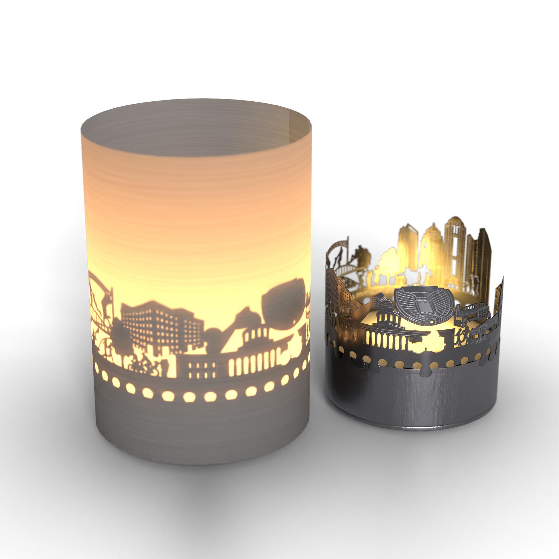 Mit dem Columbus Geschenktube wird aus jeder Kerze ein romantisches Highlight. Die Columbus Silhouette zeigt Ihnen die magische Skyline und die faszinierendsten Bauten der Stadt auf eine Weise, wie Sie Columbus bestimmt noch nie gesehen haben. Durch das Flackern der Kerze erwacht die Columbus Skyline Silhouette zum Leben und projiziert die schönsten Sehenswürdigkeiten der Stadt als magisches Schattenspiel in den Raum: Die lebhaften Straßen der Innenstadt, das Wexner Center, der Ohio Statehouse, alles in Miniatur mit viel Liebe zum Detail präsentiert. Durch den mitgelieferten Projektionsschirm wird das Erlebnis noch intensiver.