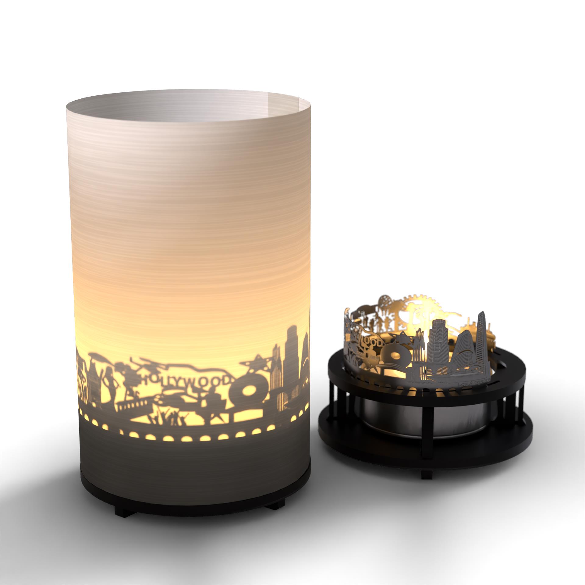 Lieferumfang: Geschenkbox inklusive hochwertiger Los Angeles Edelstahl-Silhouette, Projektionsschirm, Kerzenhalter und einem Teelicht. Die Silhouette ist unbegrenzt wiederverwendbar, austauschbar und kompatibel zu allen anderen 13gramm Silhouetten.