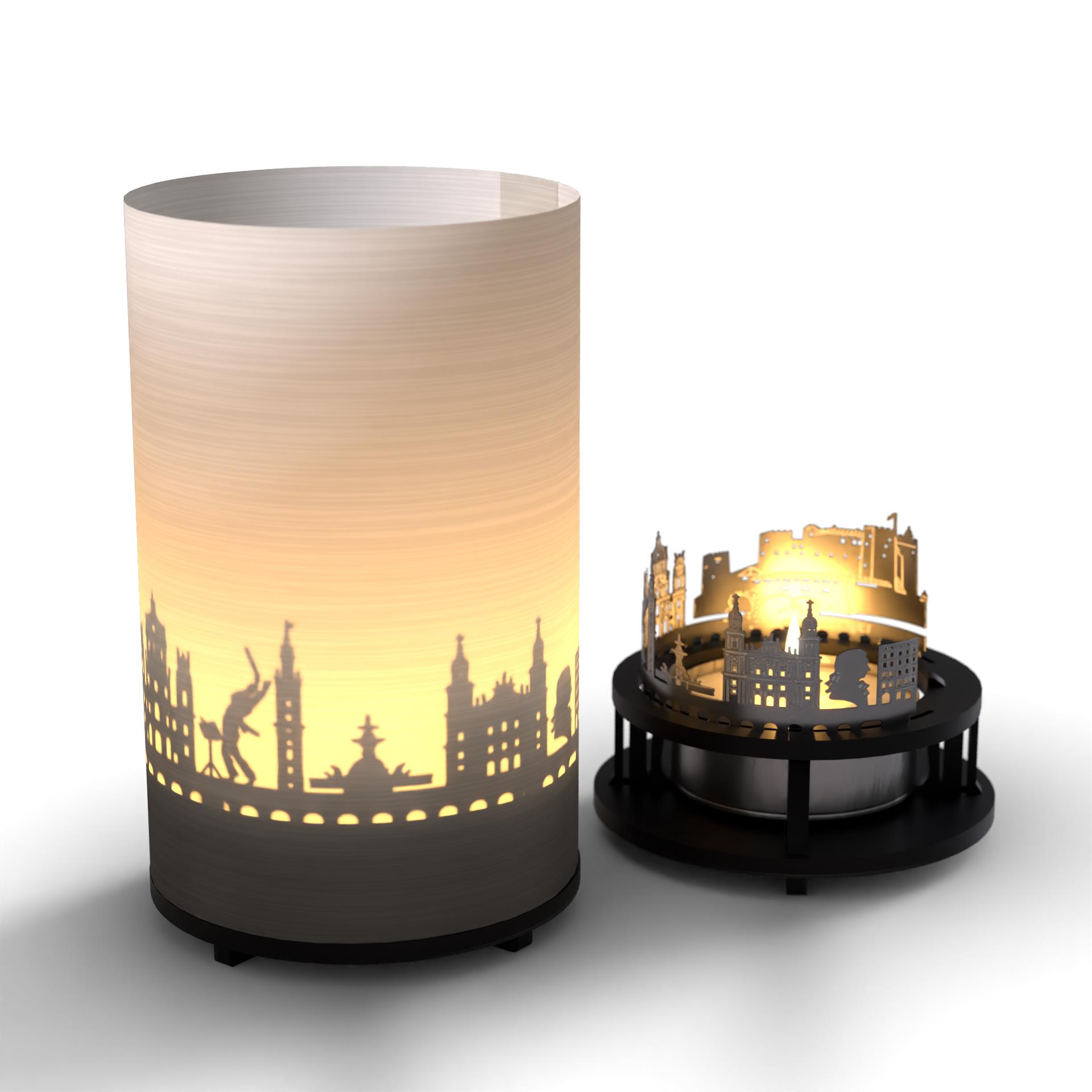 - Das Salzburg Skyline Windlicht bringt Salzburg zum Leuchten und zaubert magisch die Skyline in den Raum. Die Motivkerze lädt dazu ein, Salzburg im Kerzenschein zu erkunden und erzeugt eine besondere, magische Atmosphäre. Ein wunderschönes Geschenk für Salzburg-Fans und als Erinnerungsstück an die Stadt.