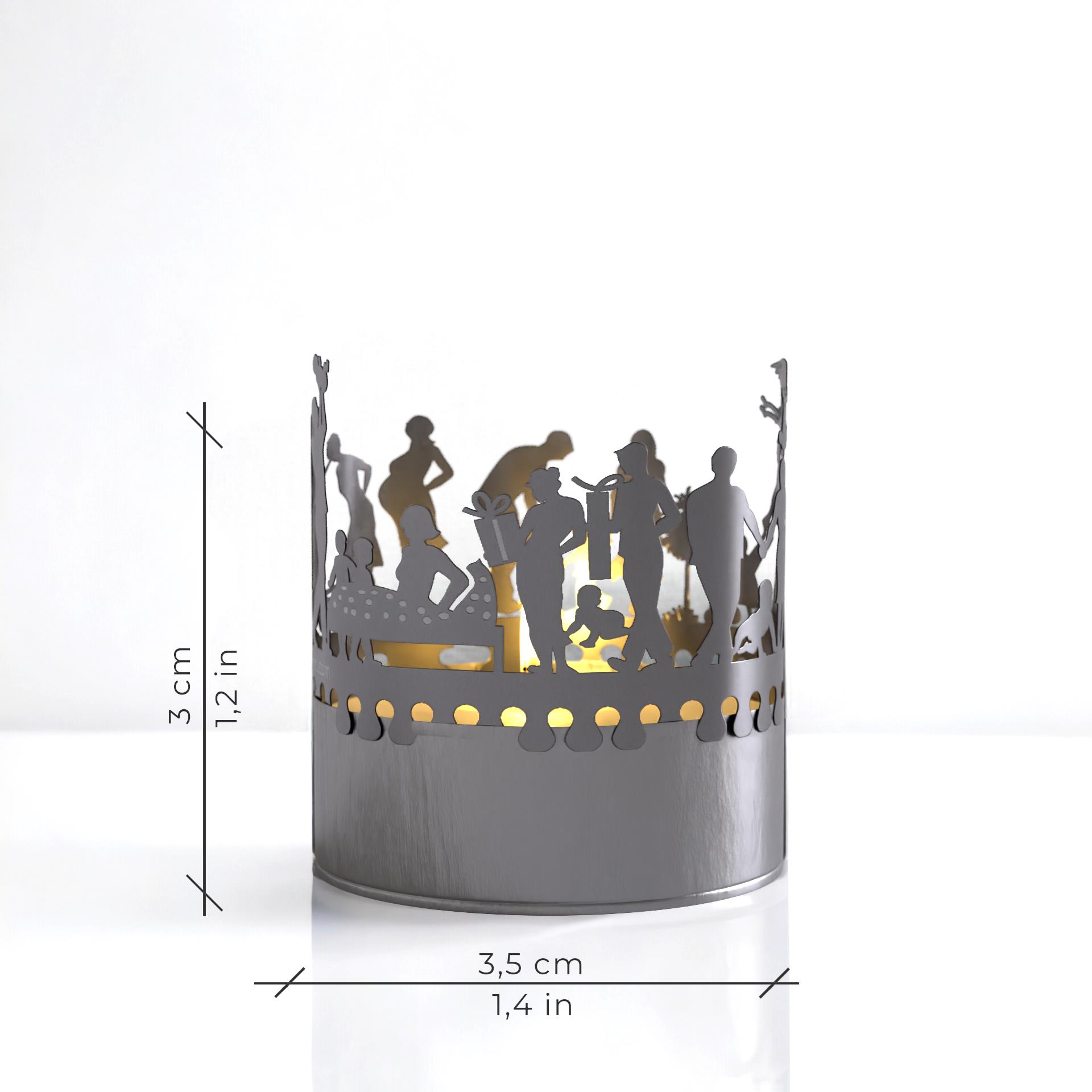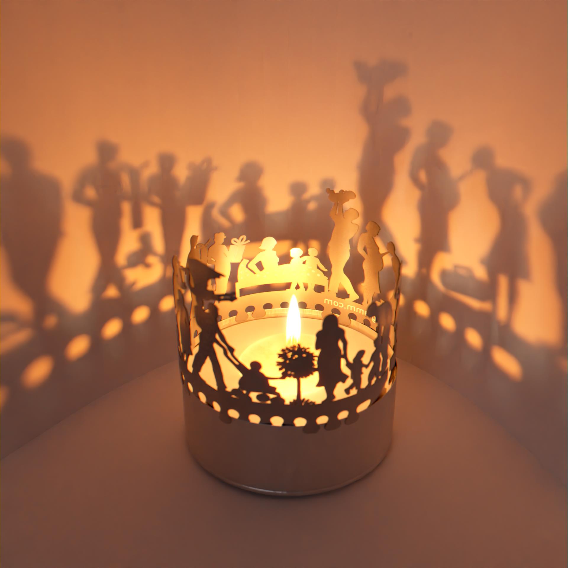 Willkommen auf der Welt, kleines Wunder! Unser Zur Geburt Windlicht Schattenspiel ist die perfekte Geschenkidee zur Geburt. Mit einer Edelstahl-Silhouette werden Schwangerschaft, Storch, Babys und vieles mehr in den Raum projiziert und lassen eine magische Atmosphäre entstehen. Das flackernde Kerzenlicht schafft ein zauberhaftes Schattenspiel und erzeugt eine gemütliche Stimmung, die das Herz jedes “frisch gebackenen” Elternteils höher schlagen lässt.